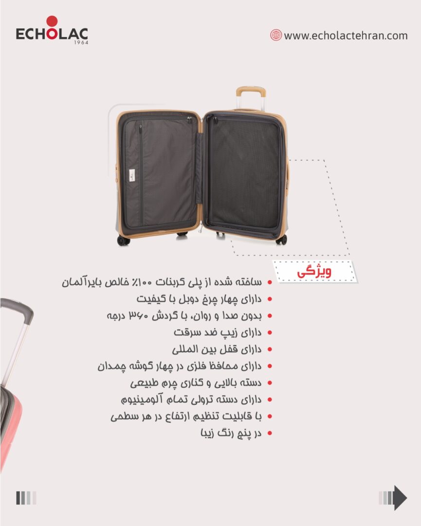 فراموش نکنید که این چمدون مثل همه چمدونای اکولاک ، قفل TSA دارد. TSA قفلی است که پلیس فرودگاه هم کلیدش را دارد و اگه مشکلی پیش بیایدجهت بررسی چمدان شما دیگر قفل چمدان شما را نمیشکنند.