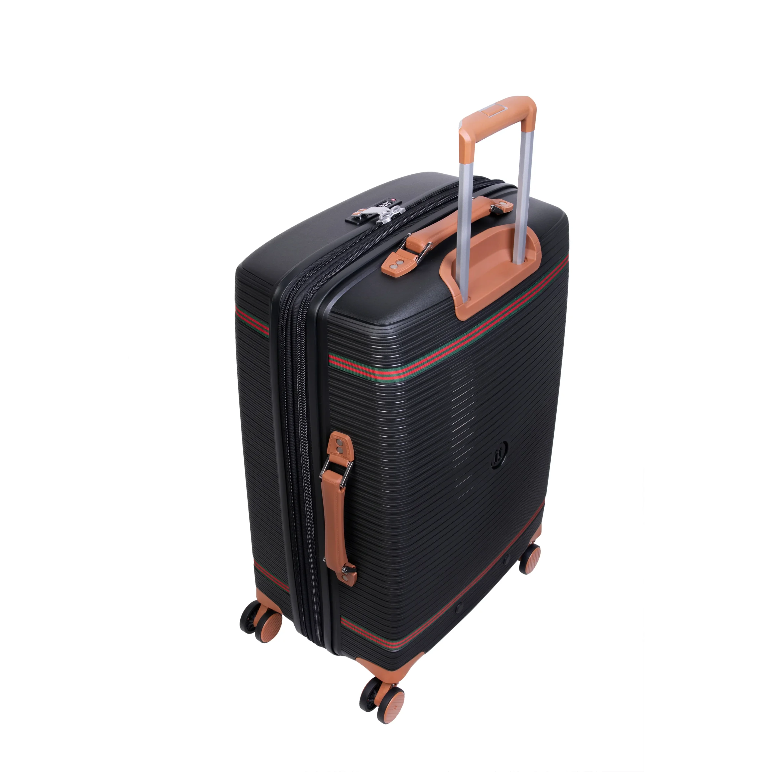 این مدل از برند آی تی، با جنس بدنه نشکن پلی پروپیلن است. دارای زیپ های مقاوم و مجکم ،دارای چرخ دوبل با قابلیت چرخش 360 درجه و سایلنت که حرکت بسیار روان دارد.