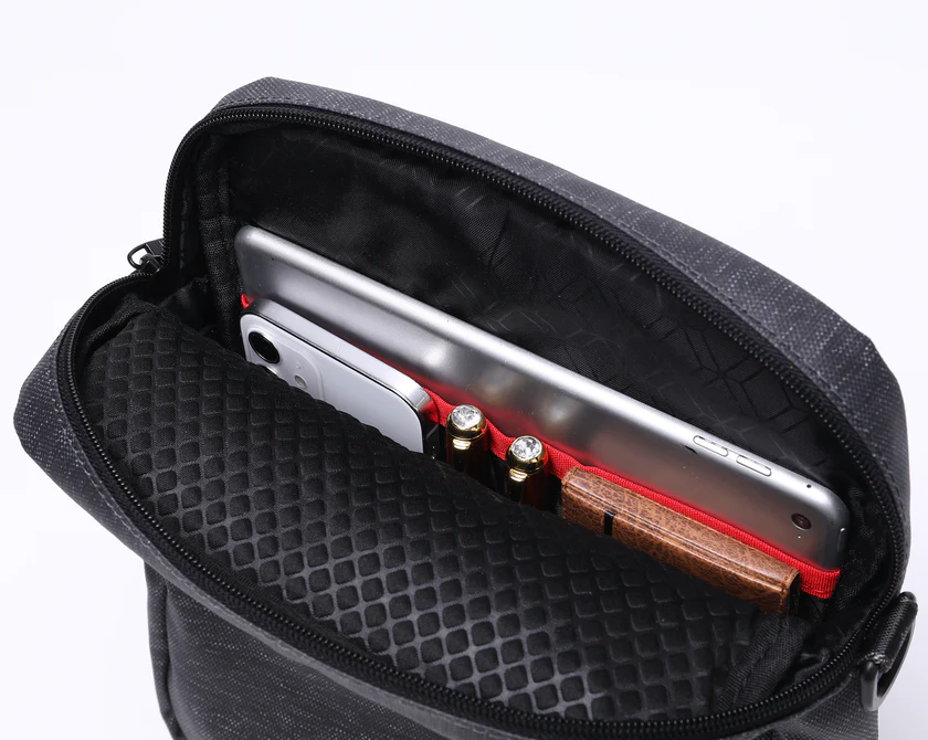 دارای یک بند شانه قابل تنظیم است، یک کیف ضد آب و سبک است. طراحی چند محفظه ای دارد و ابعاد آن 17×12×6 سانتی متر و وزن آن 0.24 کیلوگرم است.