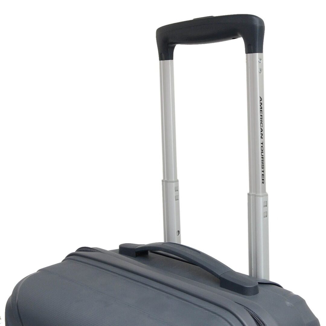 چمدان امریکن توریستر مدل KROSSl از جنس پلی پیرو پیلن صدددرصد نشکن می باشد که در مقابل ضربه مقاوم می باشد این چمدان دارای چهار چرخ دوبل 360 درجه می باشد که حمل راحت و روانی دارد.