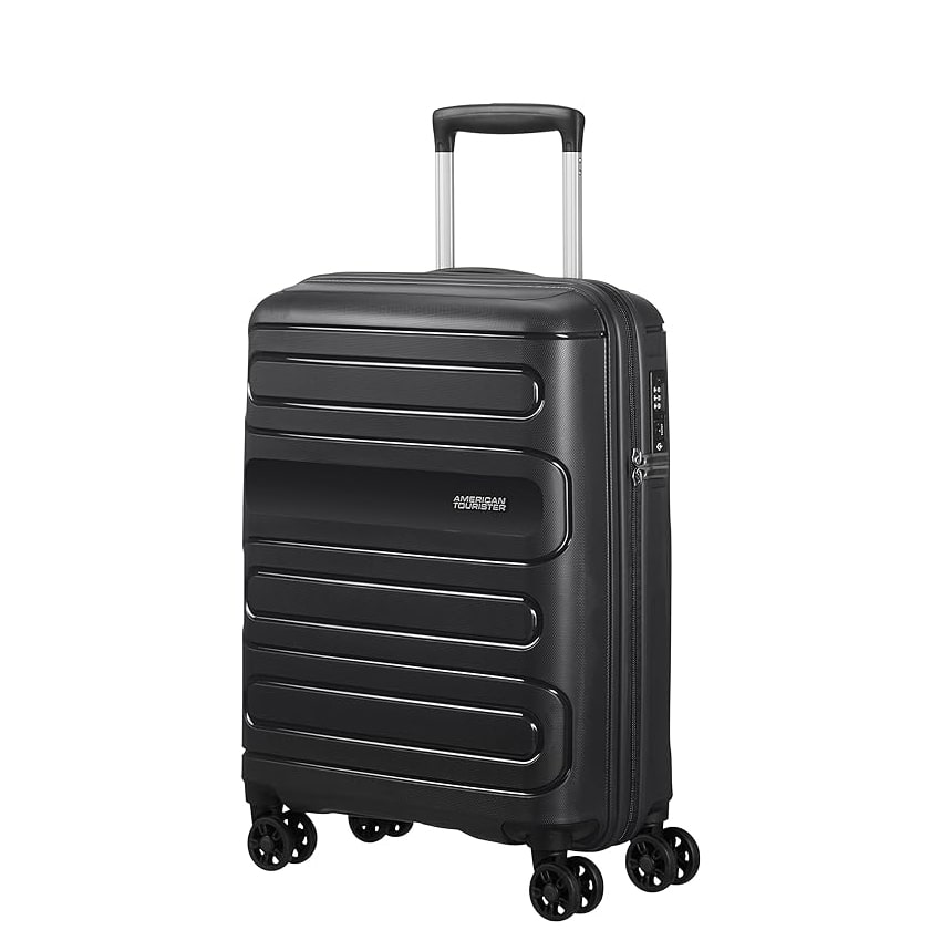 چمدان امریکن توریستر مدل سان ساید یا 51G از جنس پلی پیرو پیلن یا PP صد درصد نشکن می باشد که در اثر ضربه و پرتاب مقاومت بالایی دارد زیپ این چمدان از نوع دوبل ضد سرقت و دارای قفل سری TSA می باشد.
