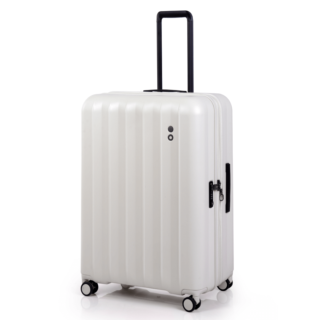 چمدان اکولاک مدل آموس سایز بزرگ در رنگ بندی های سفید و مشکی در فروشگاه اکولاک درحال عرضه میباشد.