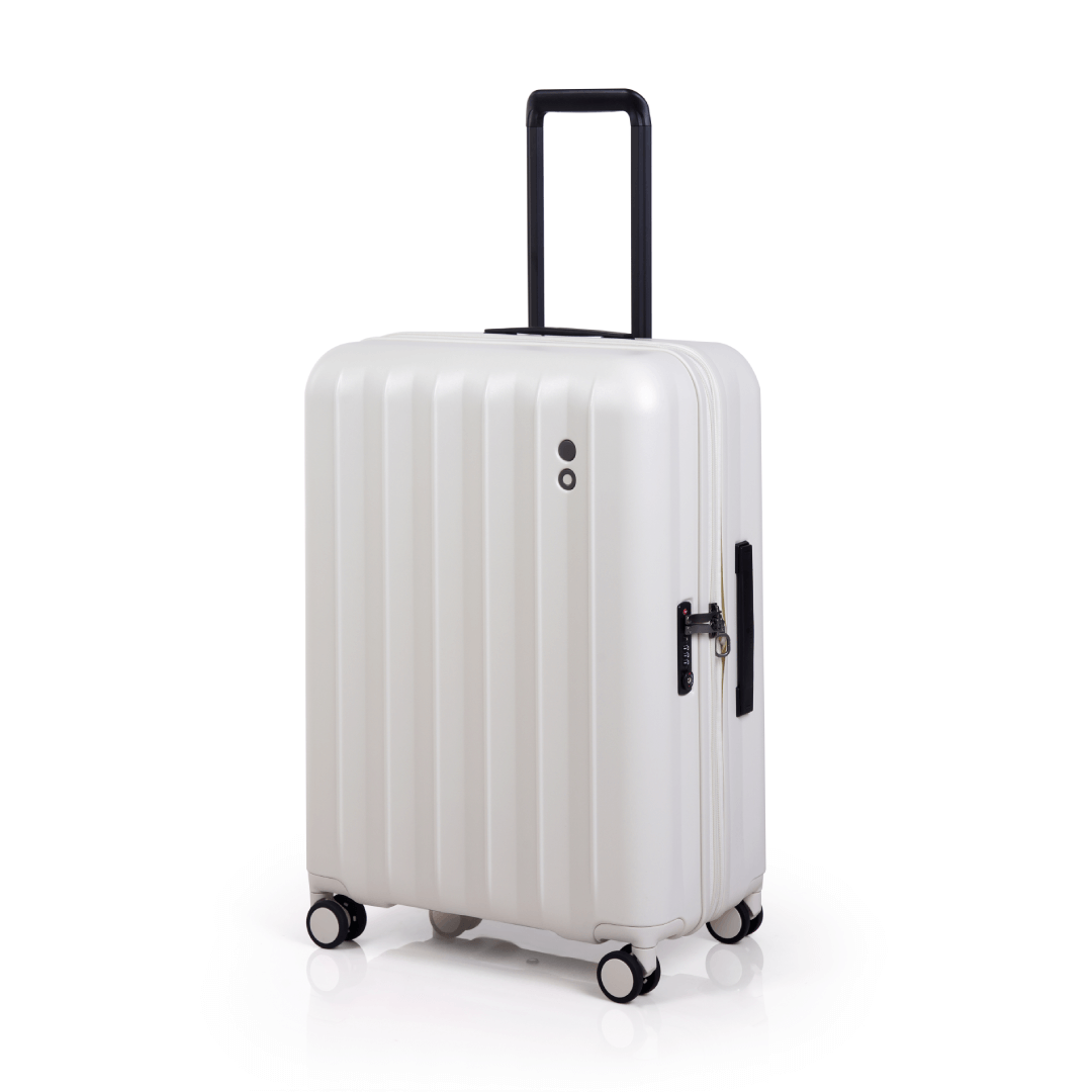 چمدان اکولاک مدل آموس سایز متوسط در رنگ بندی های سفید و مشکی در فروشگاه اکولاک درحال عرضه میباشد.