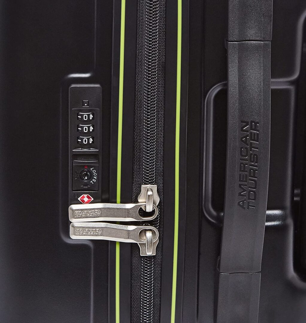 کاملا ضدآب است، دارای قفلهای کلیکی رمزدار در بالا ، پایین و کنار چمدان است و قفل امنیتی TSA دارد.