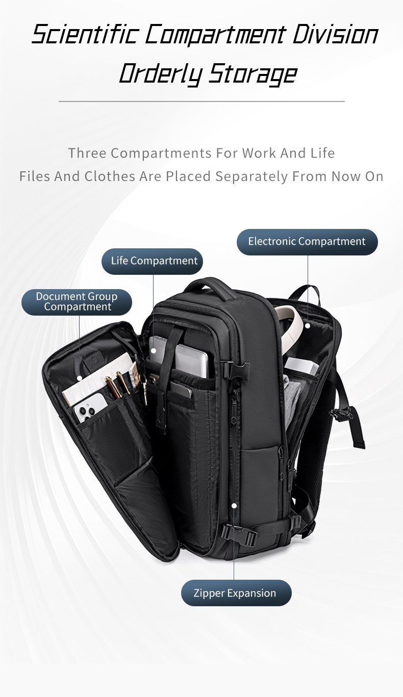 تنها در چند ثانیه، از یک کولهپشتی باریک روزمره به یک کیف بزرگ مسافرتی تبدیل میشود. قابلیت گسترش نوآورانه آن تا ۸ سانتیمتر عمق اضافه فراهم میکند تا بدون افزایش حجم، تمام وسایل مورد نیاز خود را جا دهید.محافظت از لپتاپ و تبلت: