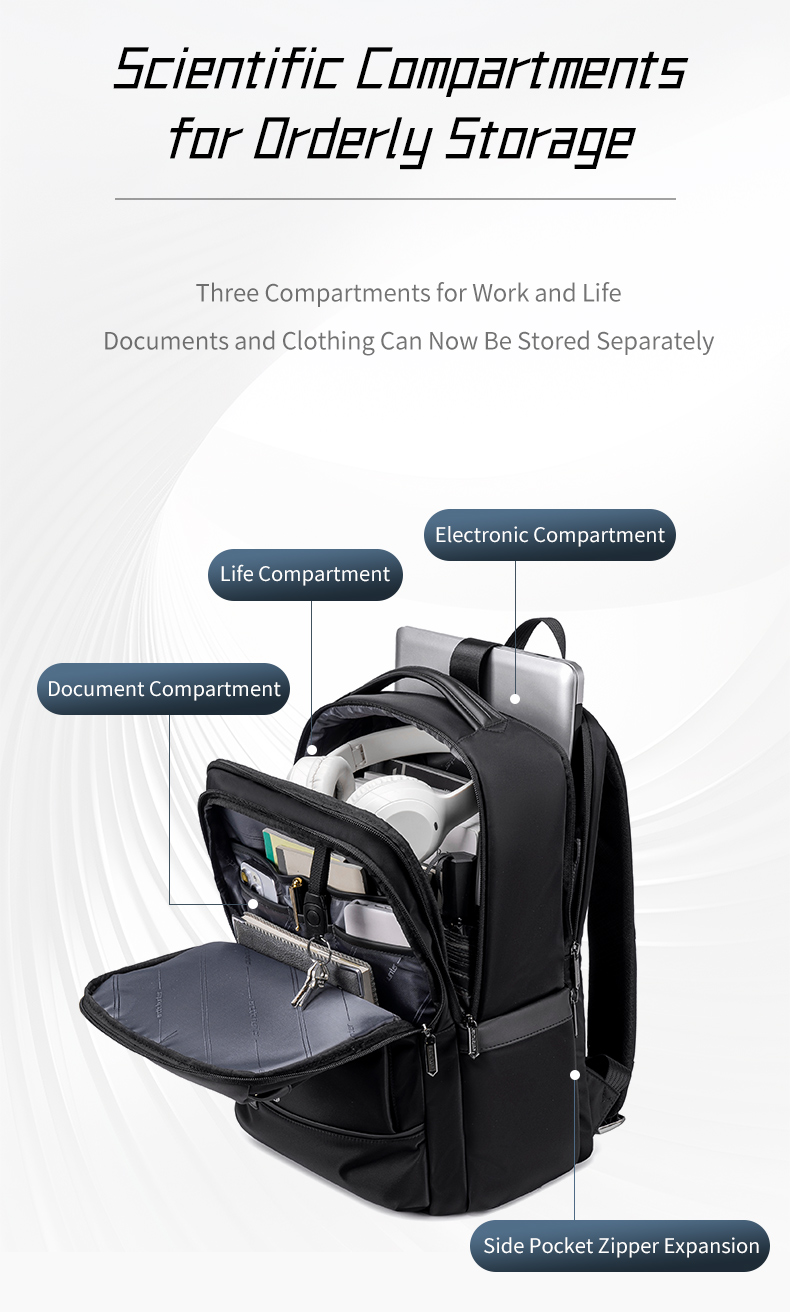 • محفظه لپ‌تاپ: دارای محفظه‌ای جداگانه با پدهای ضربه‌گیر برای محافظت از لپ‌تاپ 15.6 اینچی می‌باشد.