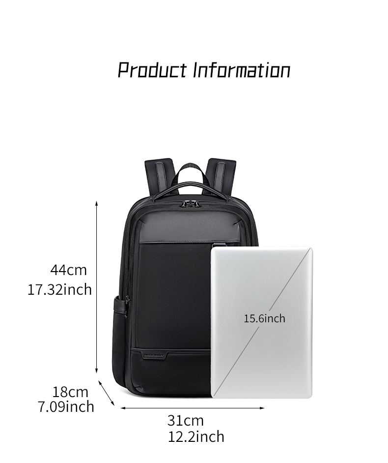 • ابعاد و ظرفیت: کوله پشتی دارای ابعاد 44 × 30 × 15 سانتی‌متر و ظرفیت 25 لیتر است که برای حمل لپ‌تاپ، تبلت، لوازم جانبی و برخی وسایل شخصی مناسب می‌باشد.