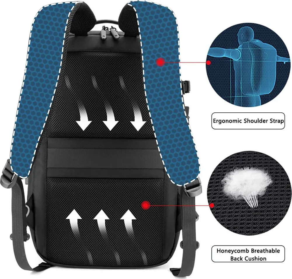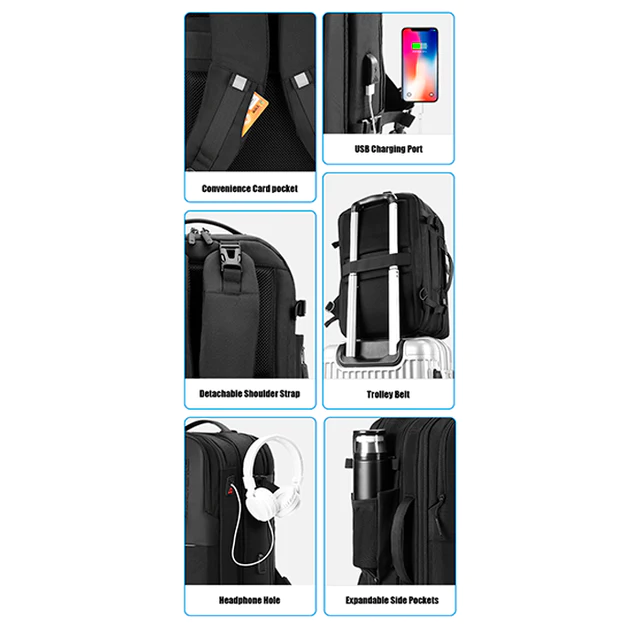 یک محفظه بزرگ برای پوشاک و لوازم جانبی دارد. دارای پورت USB برای شارژ گوشی هوشمند در کنار کیف است و همچنین دارای دسته های اصلی و جانبی برای حمل آسان است.