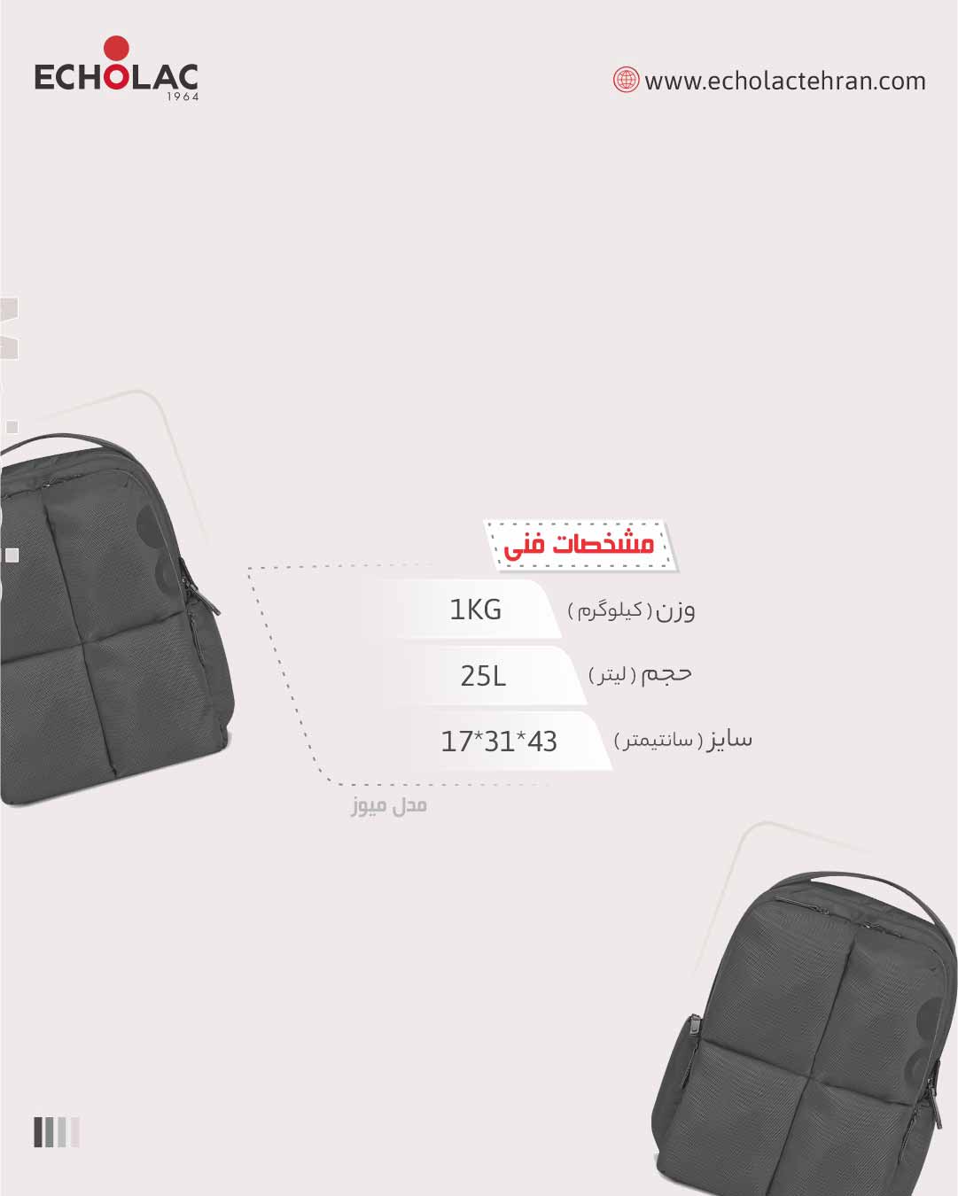 مدل میوز با حجم 25 لیتری که داره میتونه همه وسایل شما رو حمل کنه و البته! ایمن حمل کنه.