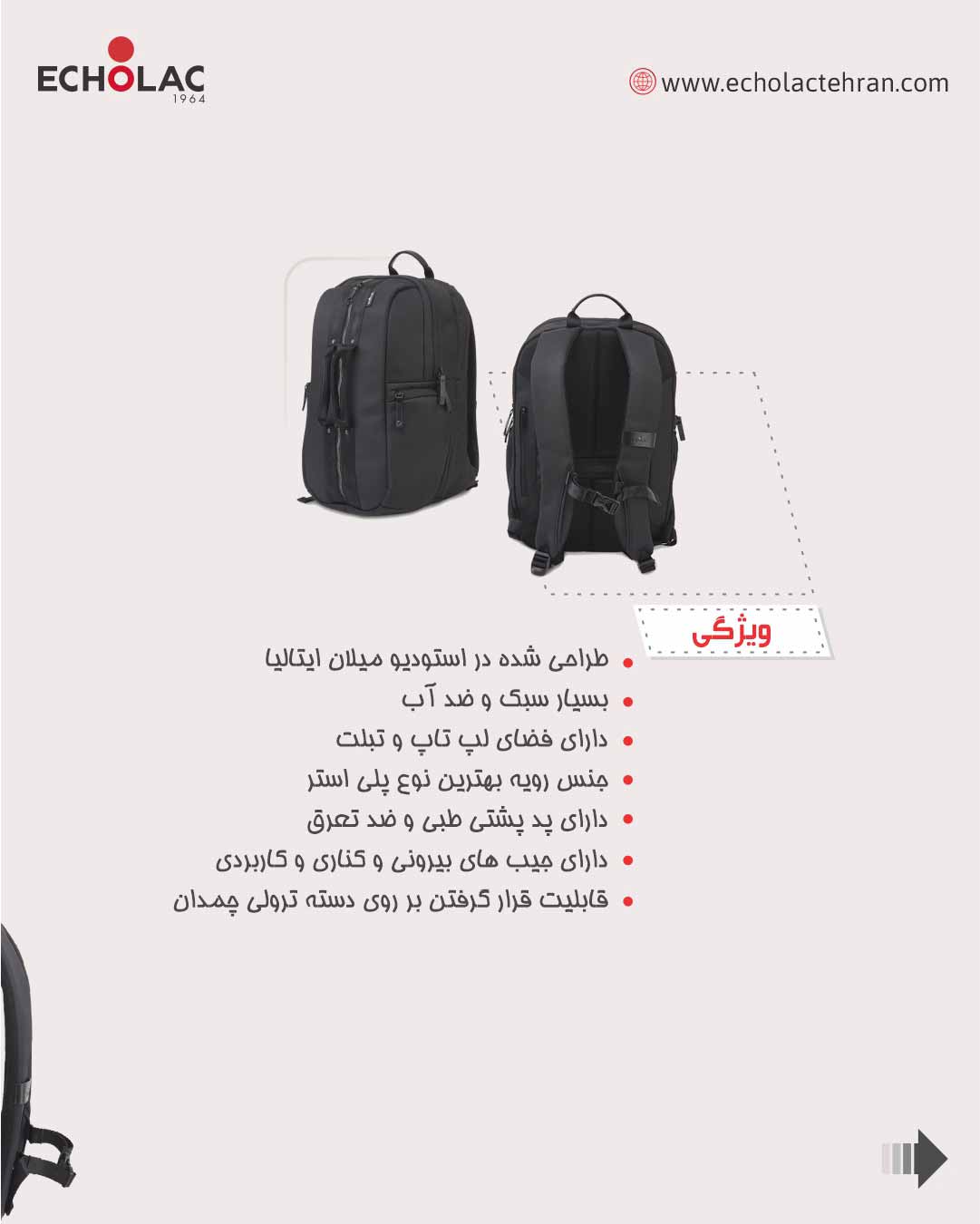 در ضمن این کوله قابلیت قرارگیری روی دسته ترولی چمدون رو هم داره.