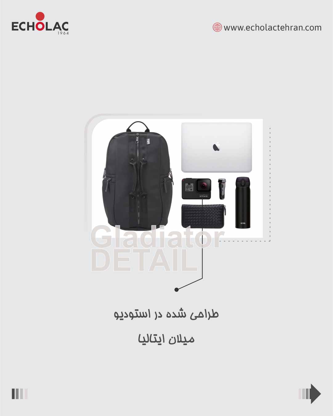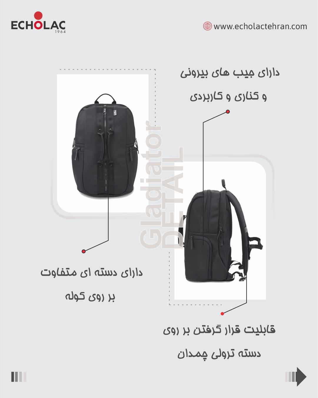کوله پشتی اکولاک مدل گلادیاتور در رنگ مشکی در فروشگاه اکولاک درحال عرضه میباشد.