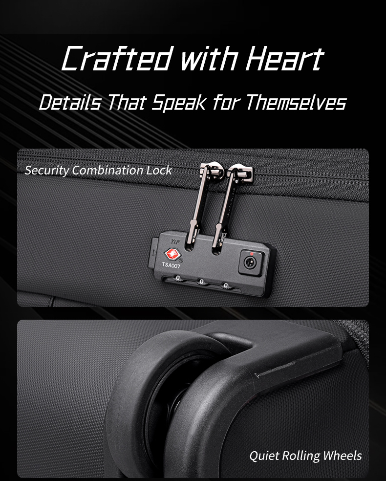 این چمدان سفر با میله آلومینیومی سبک و با کیفیت و چرخ‌های ASB بی‌صدا ساخته شده است، که حرکت نرم و راحت را در سفر فراهم می‌کند.
