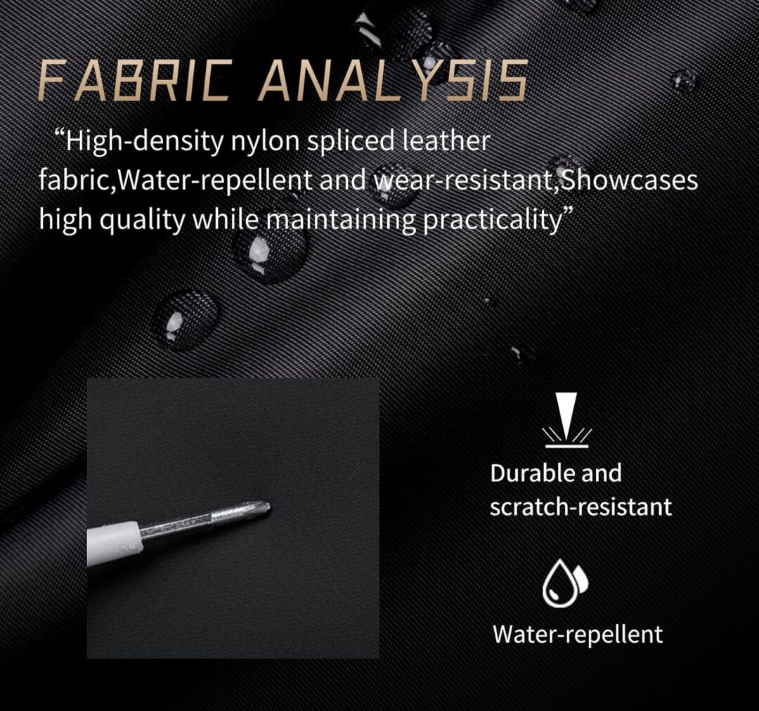 این کوله از پارچه نایلونی مقاوم در برابر آب ساخته شده است که برای استفاده روزمره و تغییرات ناگهانی آبوهوا مناسب است. آستر پلیاستر داخلی علاوه بر افزایش دوام، ساختار سبک و راحتی حمل را حفظ میکند.